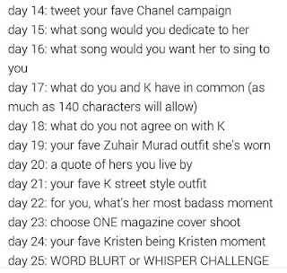 In 30 Tagen ist es soweit, unsere Kristen hat Geburtstag (9. April) und das Fandom hat sich da was schönes überlegt.. Der Twitteraccount KStewartvevo hatte die schöne Idee, dass wir Fans in den nächsten 30 Tagen jeden Tag einen kleinen "Fakt" über uns bzw. über unsere Connection mit Kristen preisgeben und dies unter dem Hashtag #KstewartFanChallenge twittern oder auch posten.